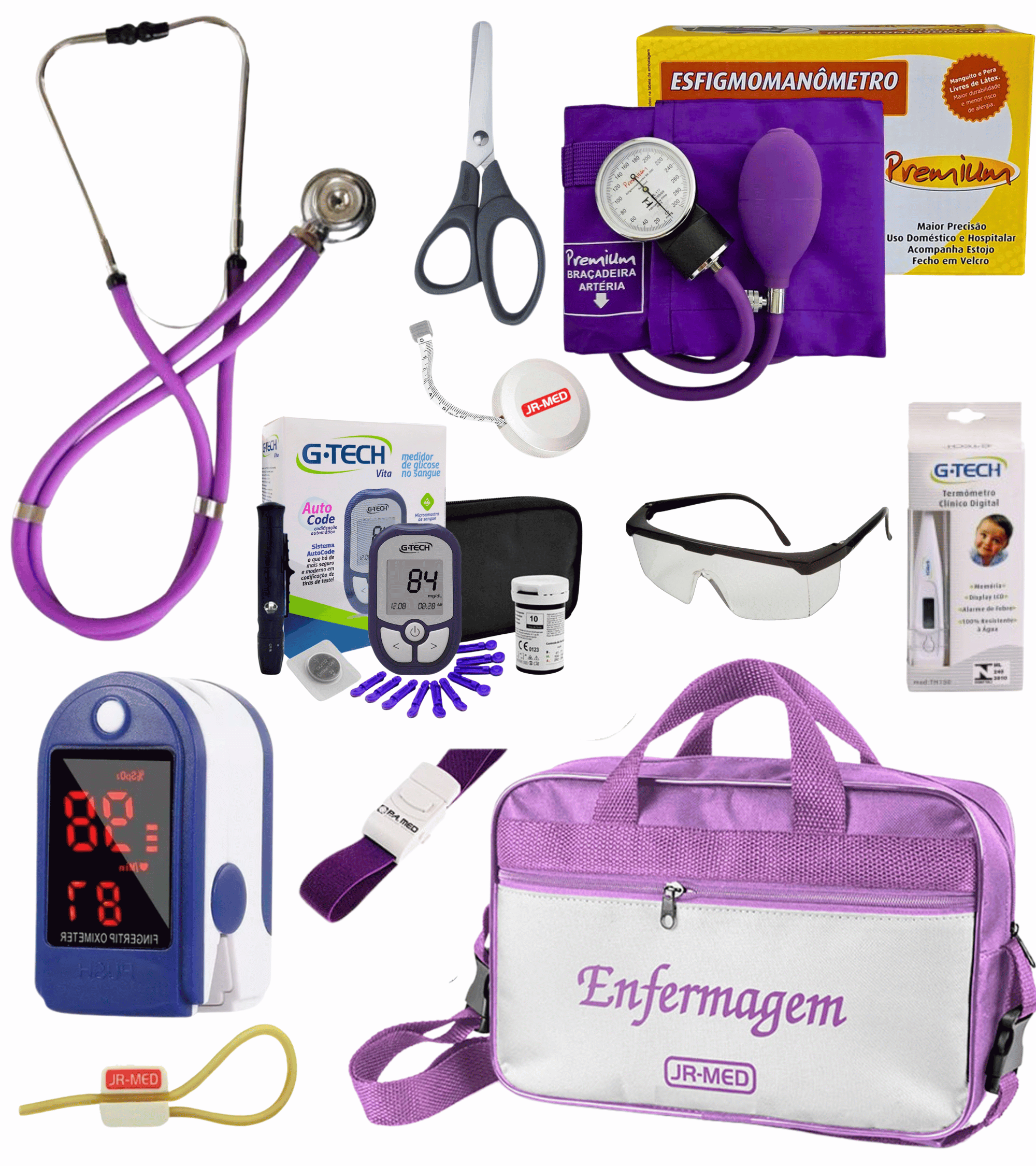 Aparelho, Estetoscópio e Bolsa, Prevalece a cor do kit.